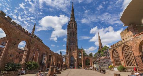 Mooring up and heading off to explore Coventry may now tempt you. Lady Godiva, who according to legend rode naked through the streets of Coventry, is said to have lived in King’s Bromley, a short distance from the end of the Coventry Canal at Fradley Junction. Coventry was first settled in 1043 with a Benedictine priory but was much destroyed during the infamous bombings of World War II. The ruins of the original cathedral are a stark voice on the skyline of Coventry's own 'ground zero' left from the horror of the war. In the 1960s a light of hope was built in the new cathedral. A bond between these two buildings that lean side by side is a powerful and emotional paradox.
