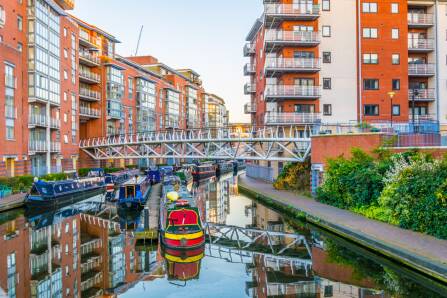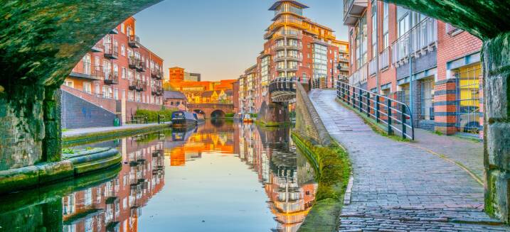 Boats cruise into Birmingham through the backdoor of the city, yet arrive at its thriving heart. The bronze bull of the Bullring, the markets, Antony Gormley's sculpture, designer shopping, multi-cultural panache and a spectacular controversial library - that's Birmingham. Yet first impressions don't give away the city's biggest secret. It is at the heart of Britain's canal network and spaghettis more miles of water than Venice (over 100 navigable miles of it!).The historic waterside hub is alive with bars and restaurants. Symphony Hall, ICC, Barclaycard Arena and Brindley Place spoil visitors with choice and tempt you to stay for as long as you can. Birmingham’s famous markets are only a short walk from the canal, and there are also art galleries, museums, theatres and dizzy opportunities for shopping too.