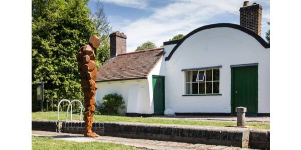 The canal continues on through a rural landscape of fields, trees and sheep, ascending locks at Preston Bagot and Lowsonford. Next to Lock 31 is a traditional lengthsman’s cottage (now cared for by the Landmark Trust). A sculpture by Antony Gormley looking into the lock was placed here in May 2015 as part of LAND project. The M40 crosses the canal just after Lapworth Bottom Lock though its noise can be heard for some time before and after.