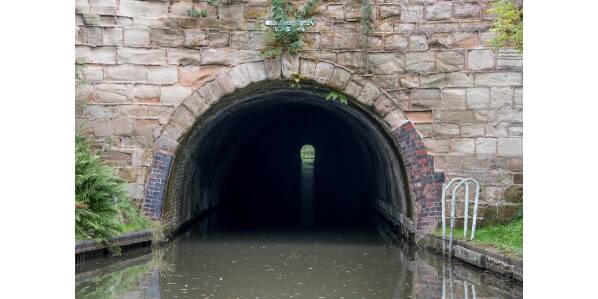 The canal winds gently through pretty countryside before the railway over the canal marks the start of the built-up area. Shirley Draw Bridge, next to a pub of the same name, is actually a lift bridge operated using both a windlass and a key. The canal winds past the back gardens of Birmingham’s suburbs and through the short Brandwood Tunnel (352yds/322m long).